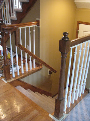 One of my regular clients gave me the three photos above to show me how she wanted her oak handrails to look. She already had white spindles, so painting her handrails black to make her stairway “very Kardashian” would be easy.