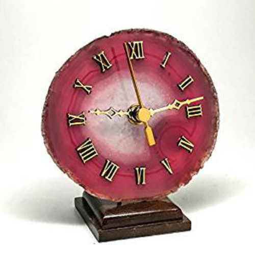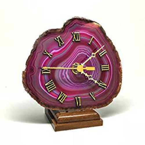I found this pink agate clock from Tuesday Morning. It is a slice of agate … with the fuchsia and gold that I am digging right now. Right now it’s on my bookshelf. I love that it shows all the bands of color and is a traditional “slice” of agate.
