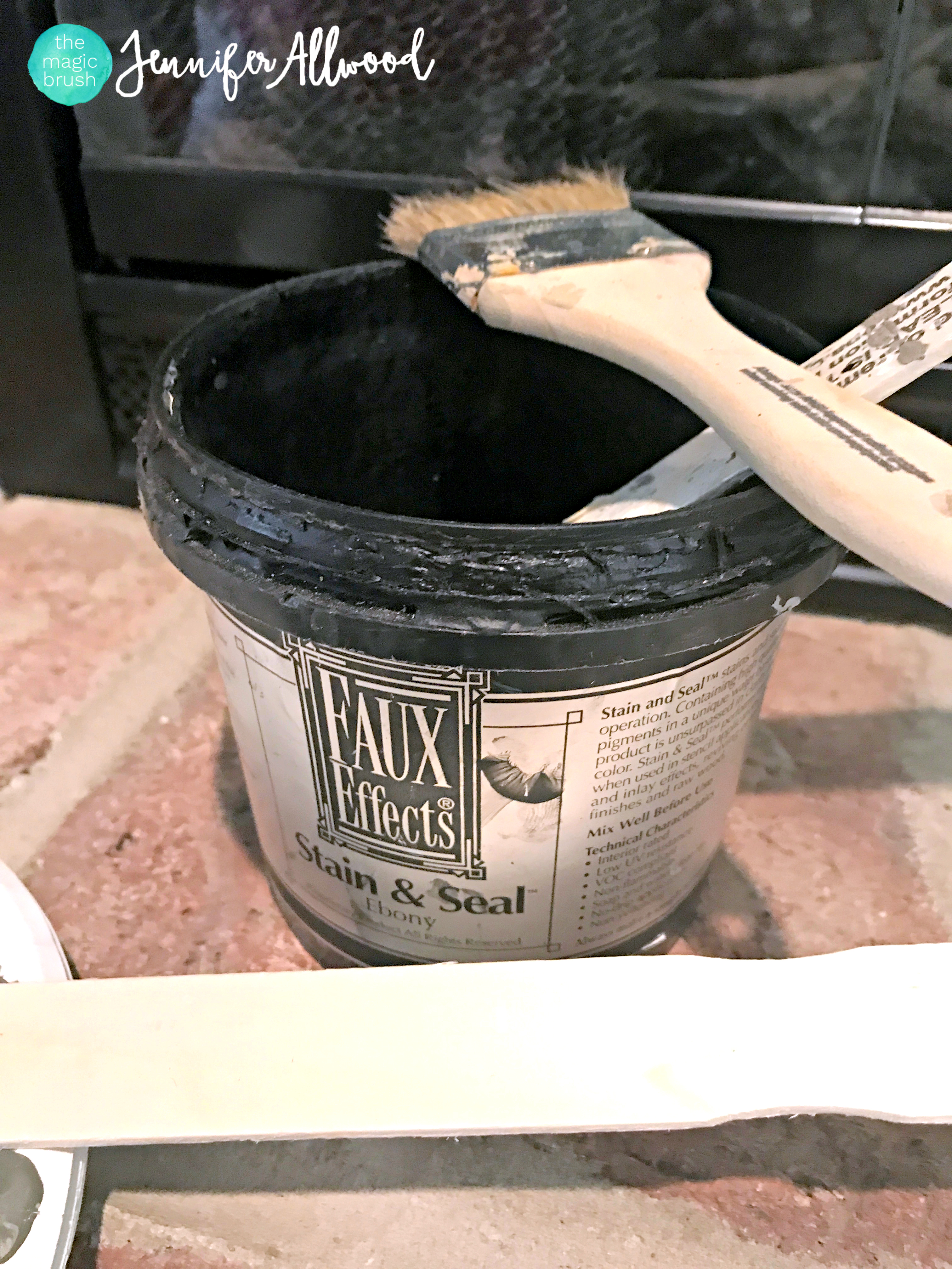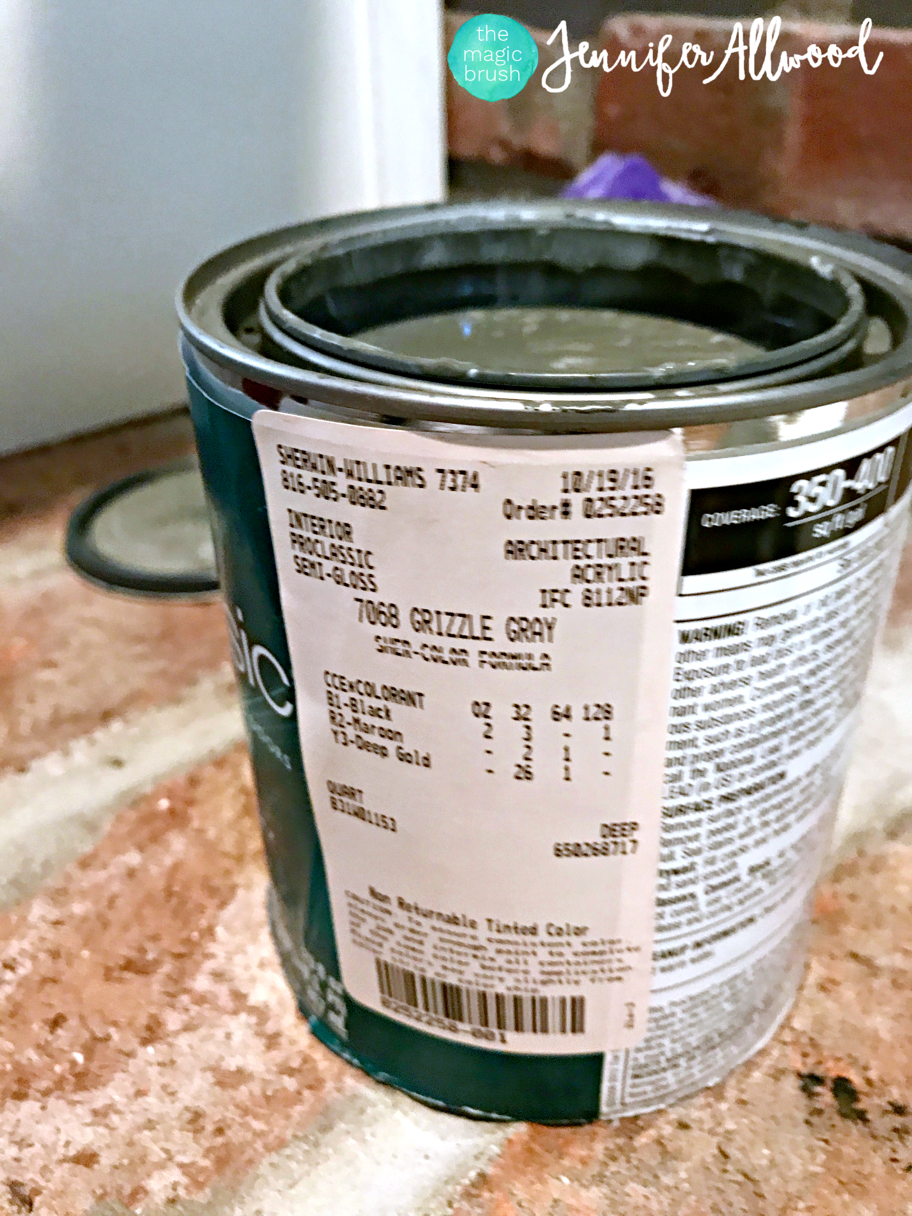 First, Jen covered the brick in 80-90% Grizzle Gray from Sherwin Williams.