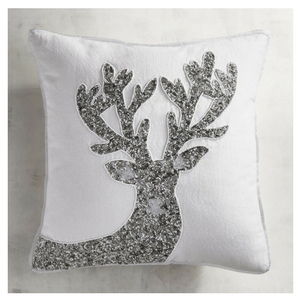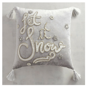In case you see one you love in the photo, you can find the beaded pillow snowflake is sold out (but here is a gorgeous one very similar), the furry pillow lumbar with beads is sold out but (a new gray version is here), the gray pompom is sold out but there is another cute gray one with Merry Christmas here and a Let it Snow one here, the white pom pom is sold out, but I love this lumbar one here in white as a replacement, and red velvet pillow is sold out, but I found another solid velvet one here for you for a nice pop of color