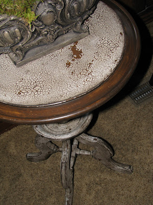 - For the hard to reach areas on this table, I used a man’s shaving cream brush to stipple size into the crevices. Perfect.