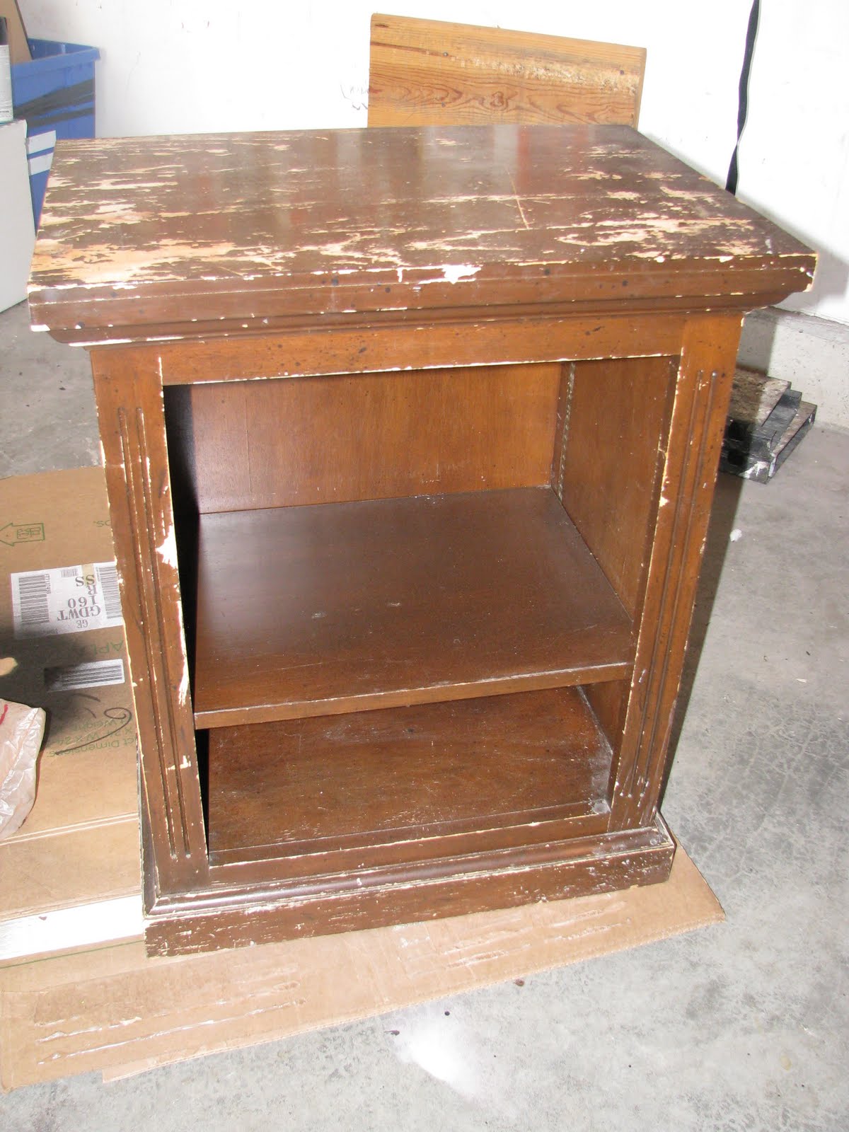 You all know my husband feeds my furniture addiction. A few weeks ago, he called to tell me he found this solid wood end table/bookcase in someone’s bulky item pickup.