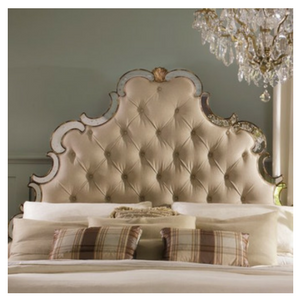 - the one-of-a-kind headboard came from Encore Boutique in Shawnee, KS. The fabric had already been painted black. Yes, you CAN paint fabric, see my blog post HERE.