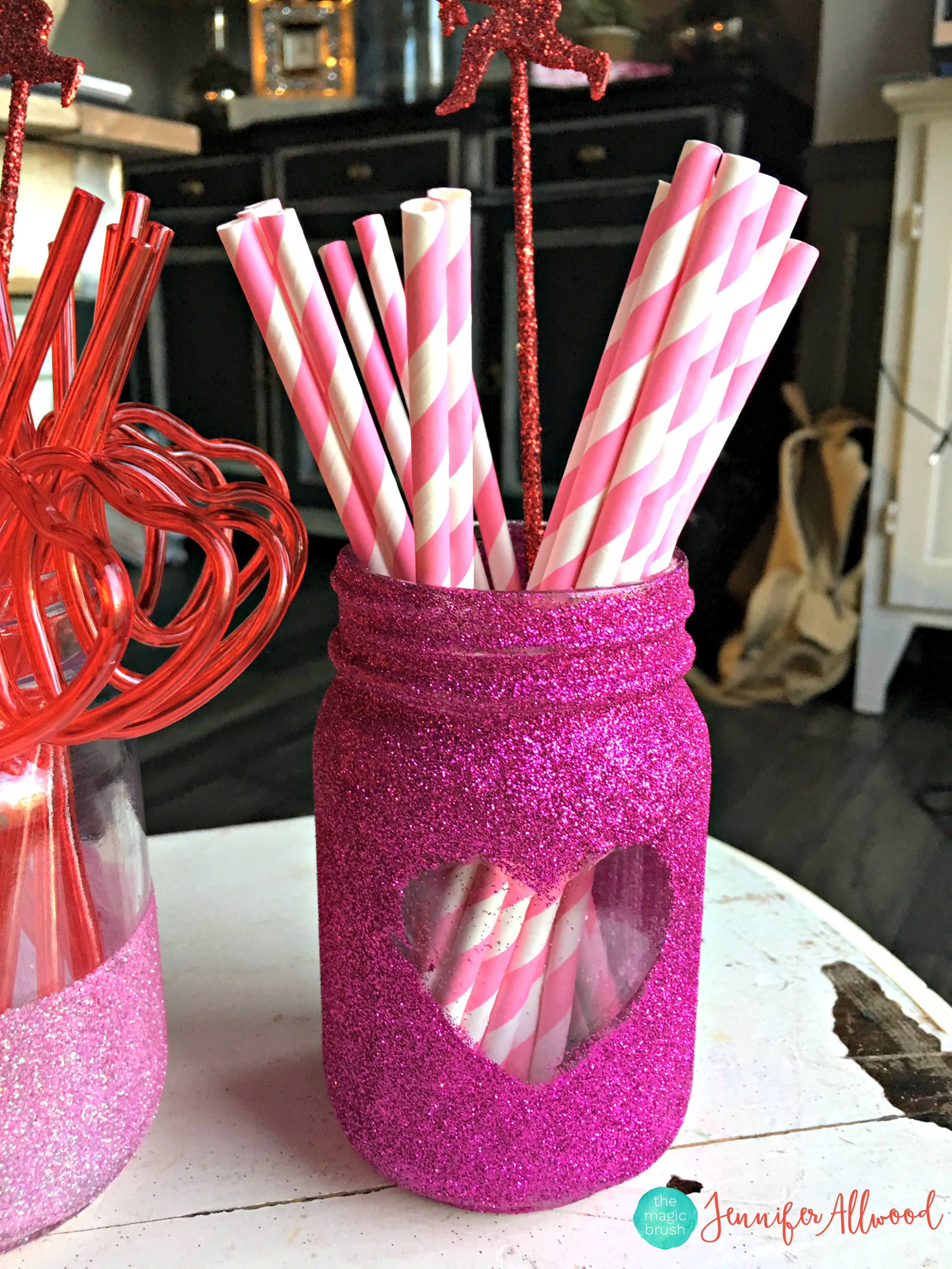 Share my Valentines glitter mason jars and get more DIY craft ideas by following me on Pinterest!