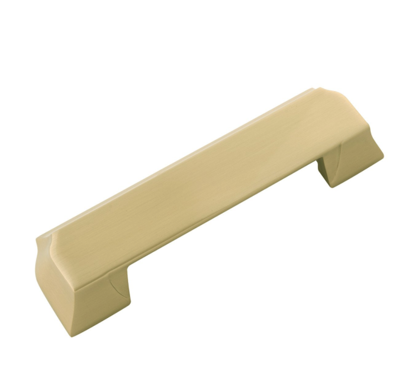 These are the actual hardware pieces we picked out with Belwith Keeler  – 128mm Studio II Pulls in Gold, which you can find here.