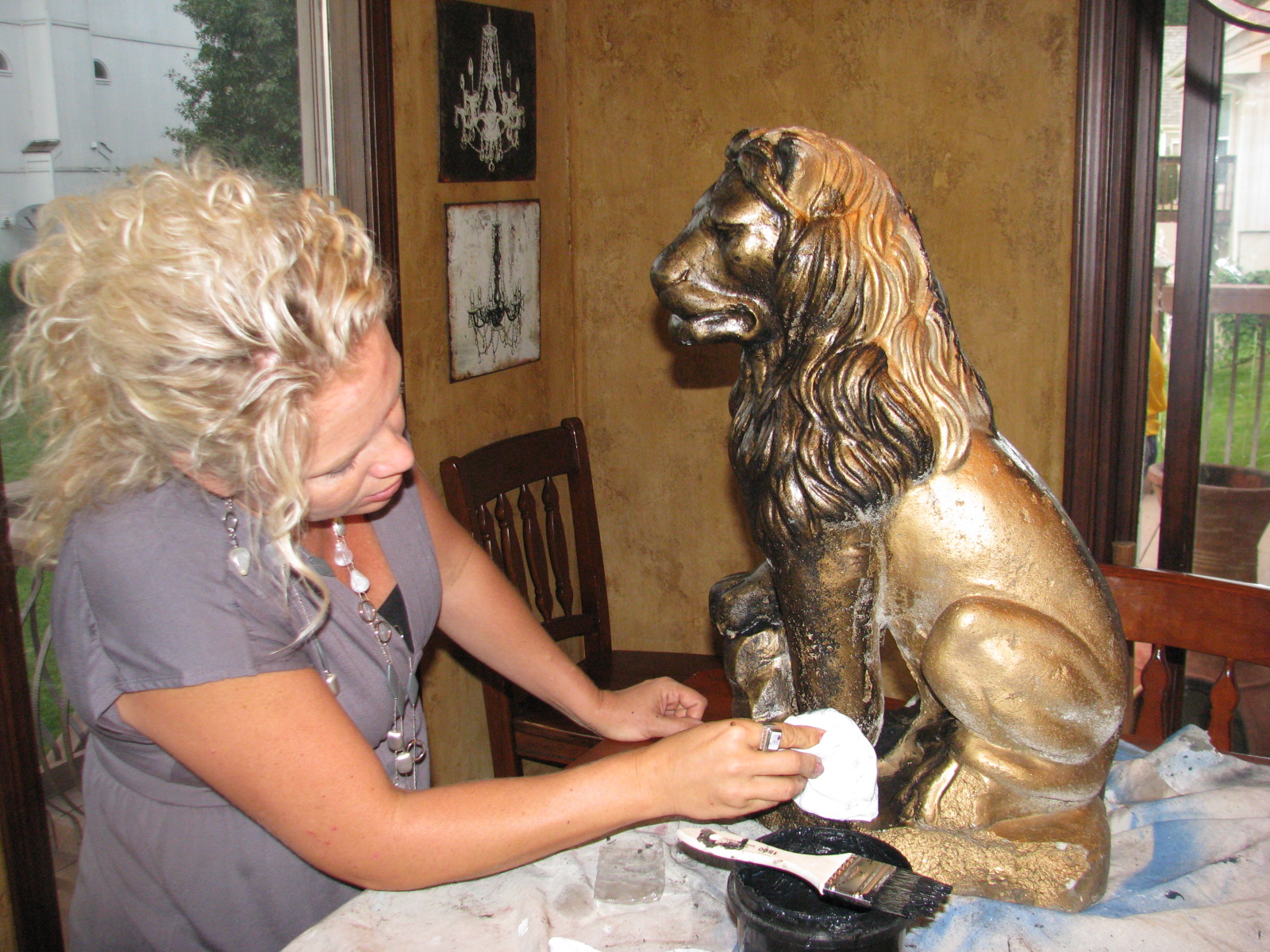 They do look great! My hubby always wanted a lion statue in front of our house… these are pretty enough I’d consider it. ( I am amazed at how cute and dressed up you are while painting! I would be a disaster!) 😉