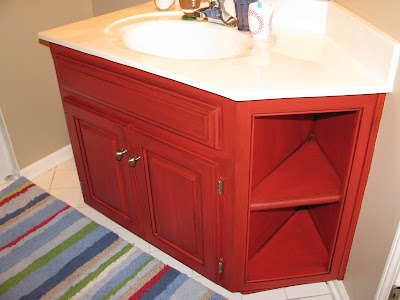Love it! It looks great! I am debating on wether to paint the boys vanity. They have a jack and Jill though and I am not sure I want to paint both seeing as the one side does not connect to another bedroom but the hallway. That is a very pretty red!