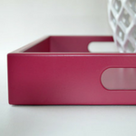 Your living room is such a wonderful combination of glamor and rusticity. I love how the soft grays really set off the warm pops of fuschia–just beautiful.