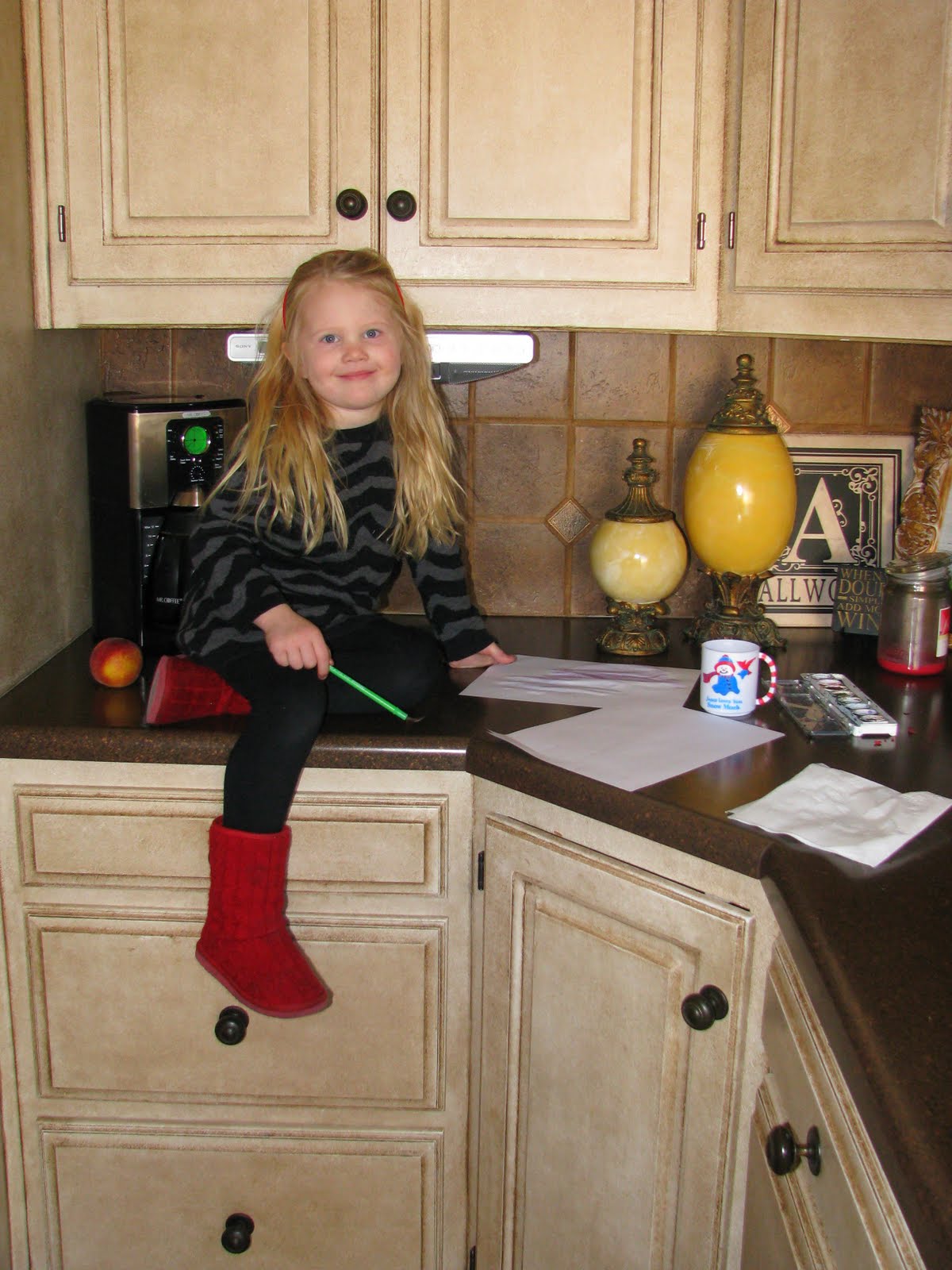 Jennifer, She is so cute!! Did you paint your kitchen cabinets? Love them!!! If so, how did you do them???