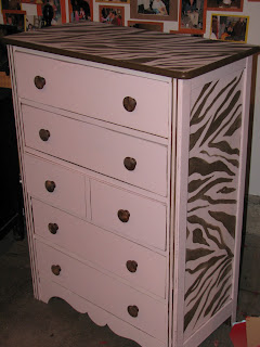 So, one night I sat in the garage and put the old, original wood handles back on it. And whipped out a zebra print paint on it.
