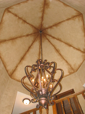 I did take a picture of the outside of the client’s house so that you can visualize the ceiling we were doing. It is the “castle looking” peaked section of the home… right in the entryway.