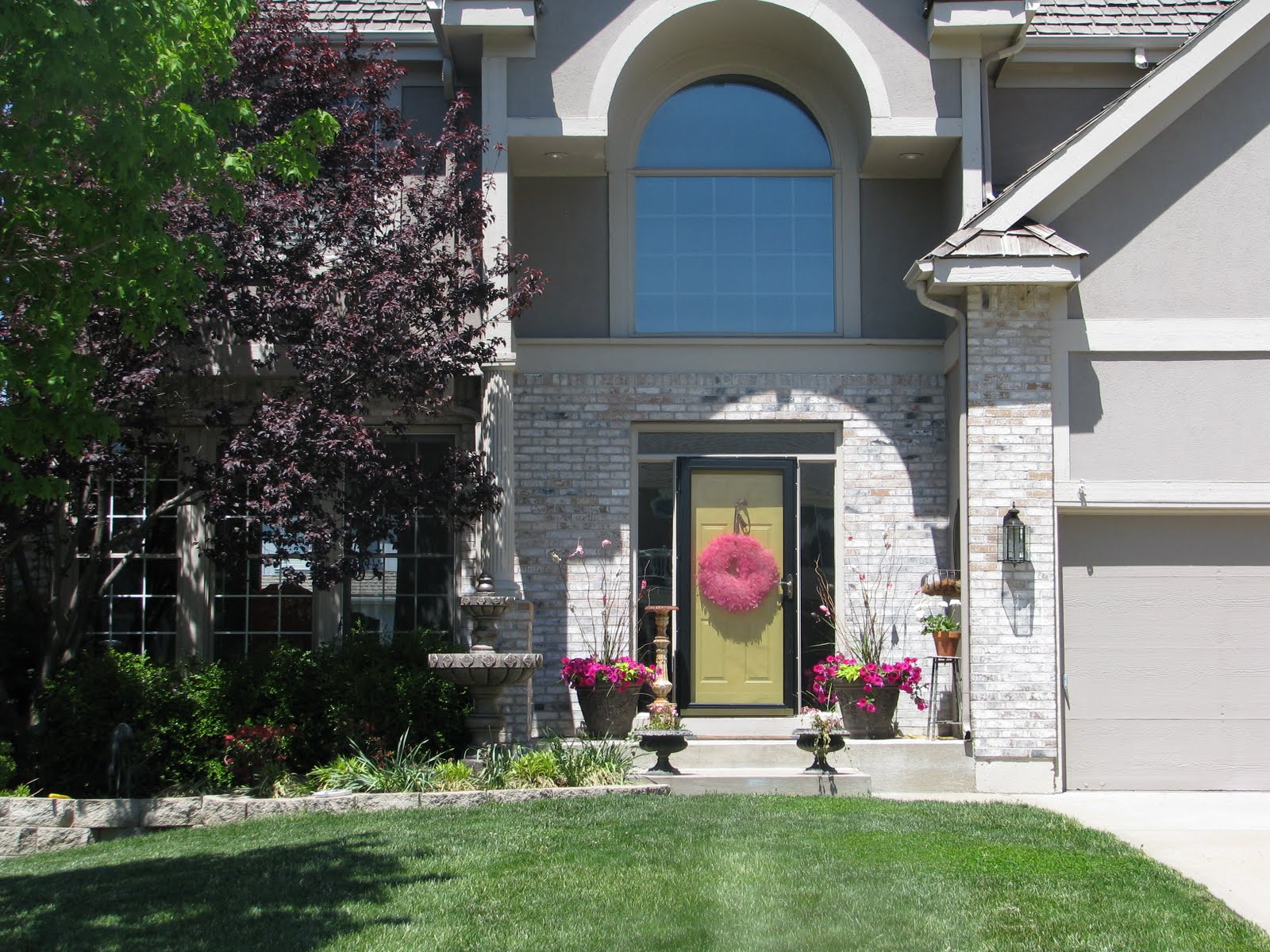 The yellow paint is much better than burgundy. It made your door look dazzling especially with the pink embellishment you put there. Also, it blends well with the growing flowers in pots nearby the door. I wonder what the current color of your front door is. It’s been two years, and I assume that you settle for a different color.