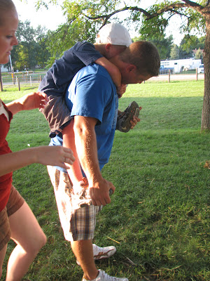 One of my boys stepped in horse doodie….. and then my brother tried to give him a piggy back ride. So, I got a picture just as my brother got the yuck on his hands. Poor brother, he was just trying to be a good uncle!
