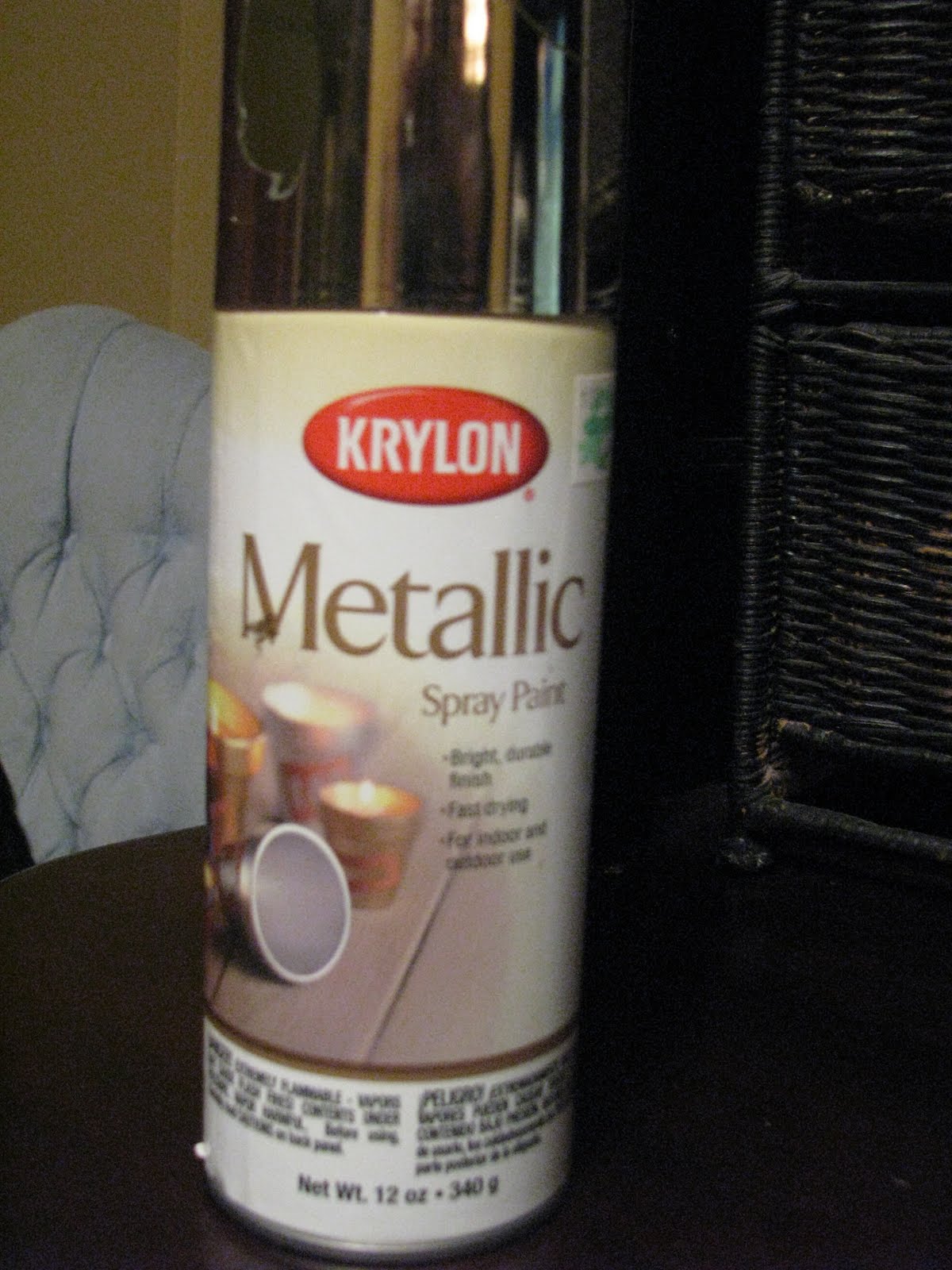 So this year, I decided to take a short cut and bought a can of metallic spray paint from Hobby Lobby. It’s Krylon’s “Gold Metallic” paint and is $6.99 a can. Ouch. But I did spray 6 pumpkins and have plenty of spray paint left!